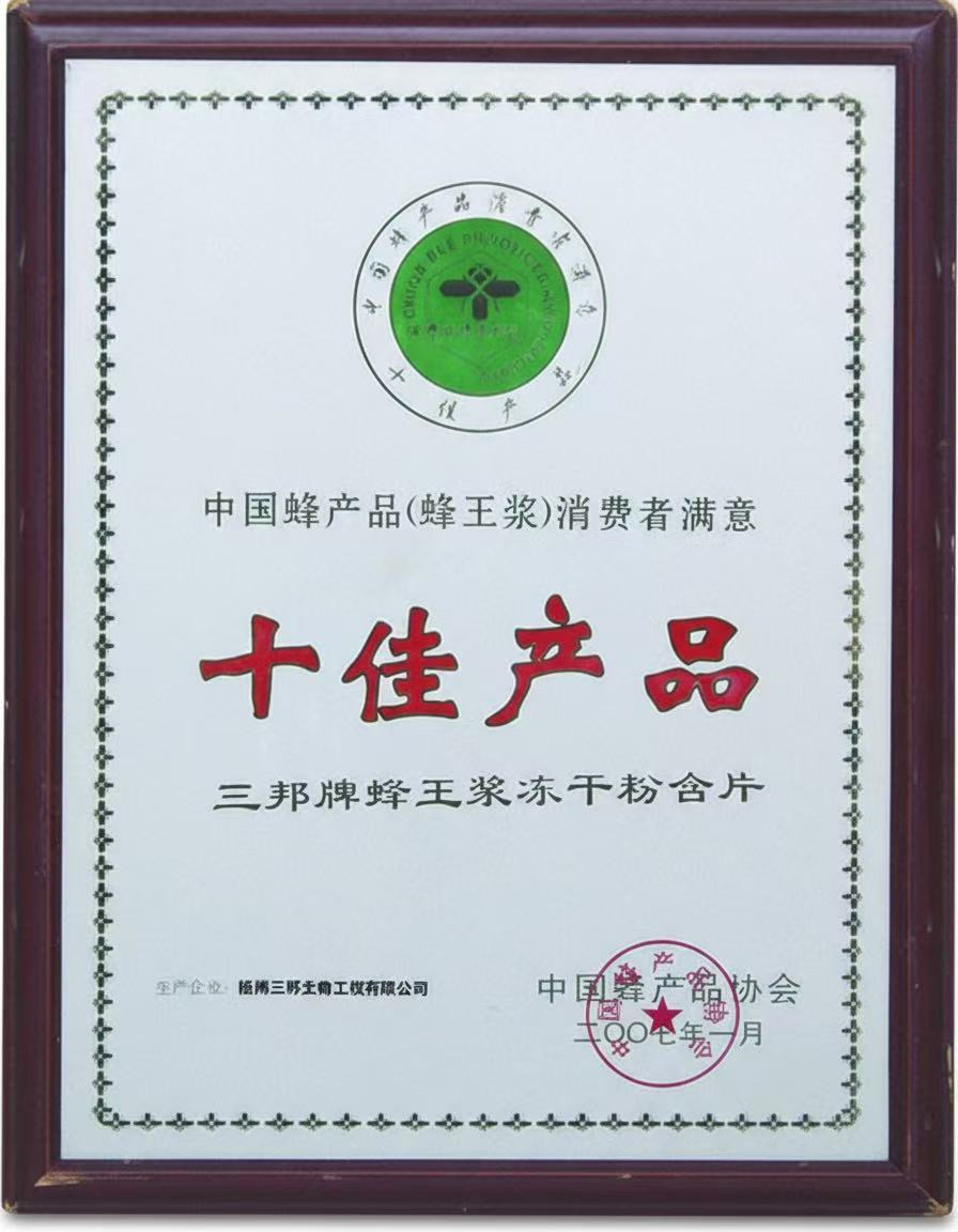 • 中國(guó)蜂產(chǎn)品消費(fèi)者滿意十佳產(chǎn)品